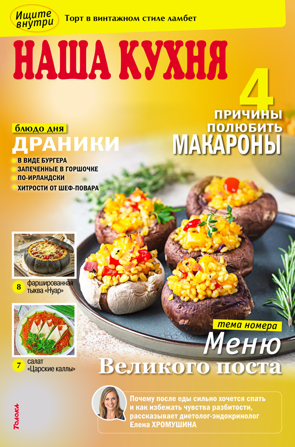 - Тема номера: «Меню Великого поста». Надоело представлять пост как череду пресной капусты и вареной картошки? Забудьте! В этом номере — яркие блюда, от которых захочется поститься круглый год. Хрустящие чебуреки с капустой, будто с праздничной ярмарки; баклажаны по-восточному — такие сочные, что пальчики оближешь; гороховые котлеты, которые не стыдно поставить на праздничный стол. А еще — воздушное безе из аквафабы (да-да, в ход идет жидкость из-под консервированного горошка!), секреты рассыпчатой перловки без комочков, календарь Великого поста, а также простые правила питания в этот период от нутрициолога. Пост — это не ограничение, а повод открыть для себя новые вкусы!